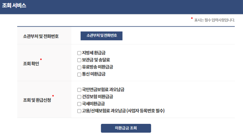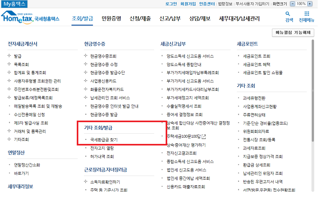 - '국세환급금 조회' 클릭