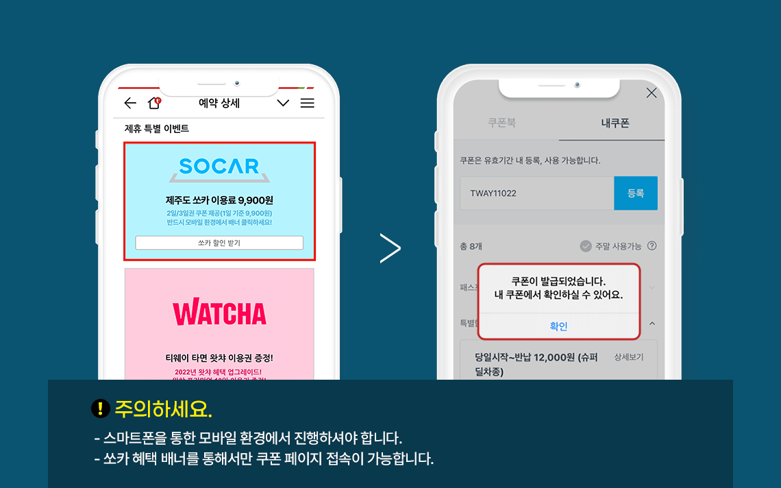 - 예약 시간 10분 전에 쏘카존 도착하기
