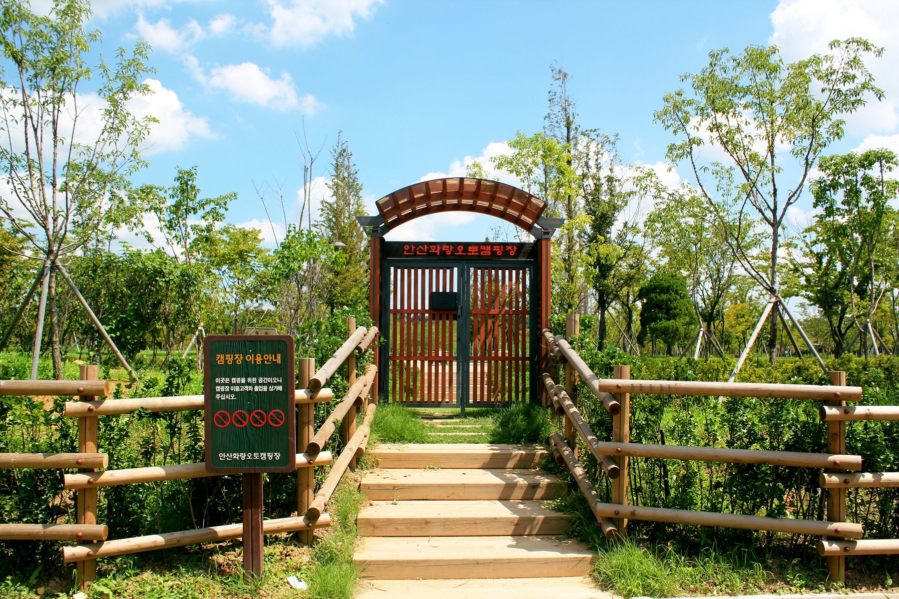 안산화랑오토캠핑장은 지자체에서 운영하는 캠핑장으로, 깨끗하고 안전한 시설을 자랑합니다. 캠핑장의 지면은 파쇄석과 데크로 이루어져 있어, 텐트 설치에 용이합니다. 또한, 사이트 옆 주차가 가능해 캠핑 용품 운반이 편리합니다.