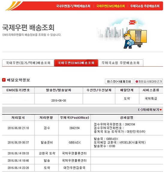 Q: 국제 택배의 우체국택배 배송조회는 어떻게 하나요?