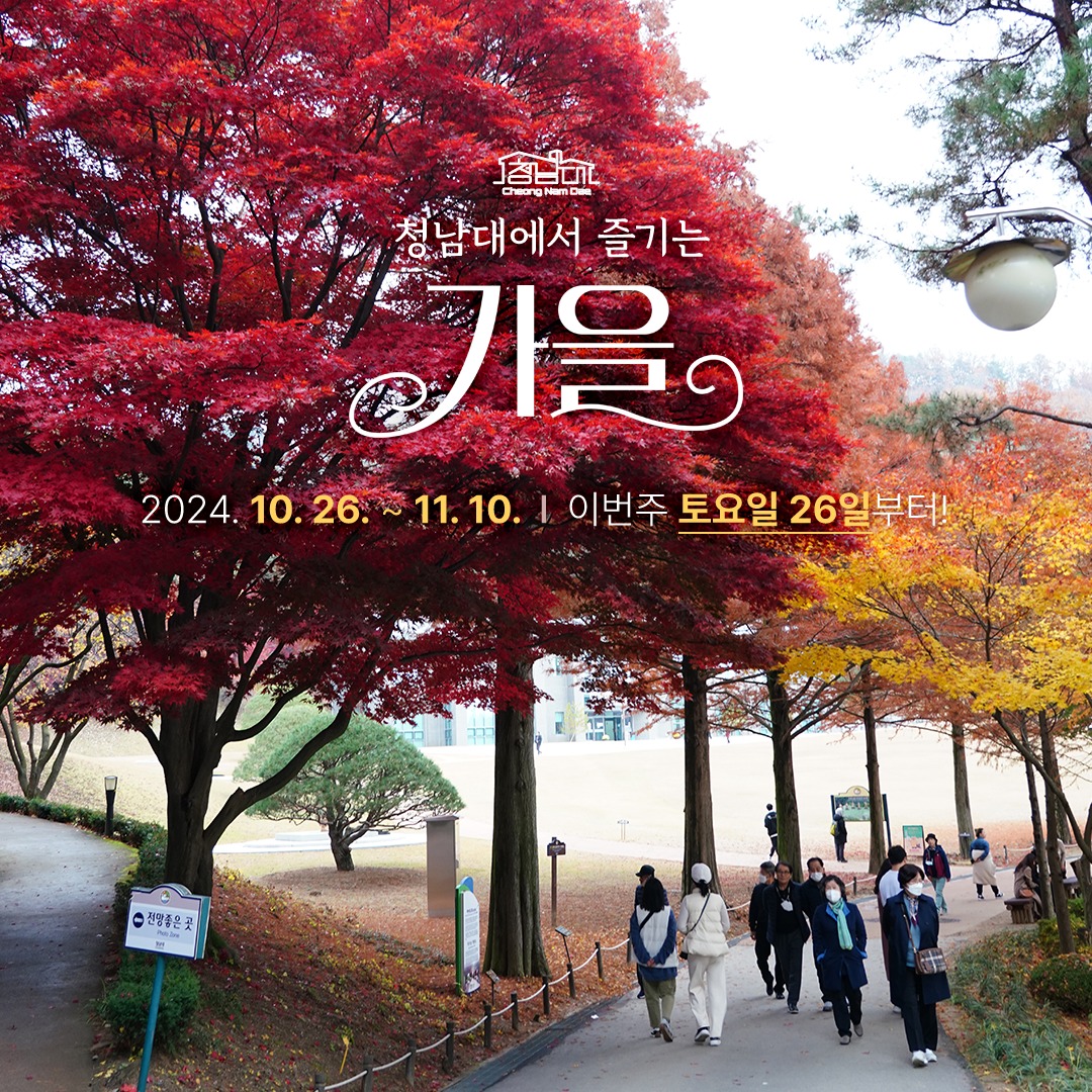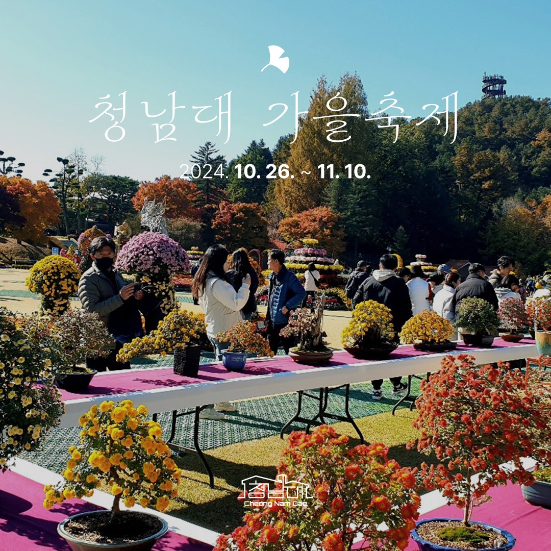 청남대 가을 여행의 하이라이트는 단연 국화꽃 축제입니다. 올해 청남대 가을 축제는 10월 26일부터 11월 10일까지 진행됩니다. 이 기간 동안 청남대를 방문하시면 단풍과 어우러진 아름다운 국화꽃을 감상하실 수 있습니다.