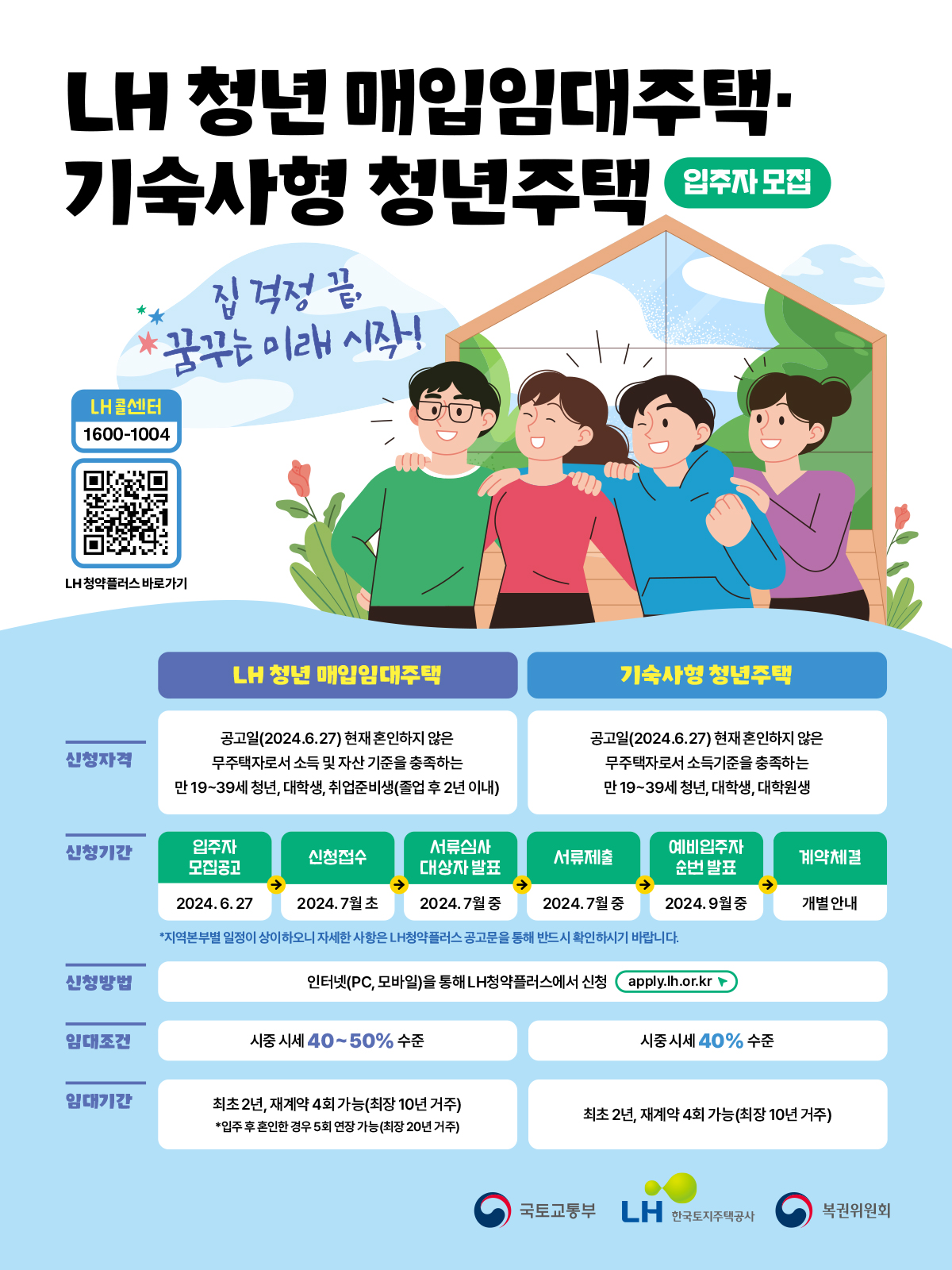 청년·신혼부부 매입임대주택에 관심 있는 분들은 한국토지주택공사(LH) 홈페이지를 주기적으로 확인하여 최신 공고와 정보를 놓치지 않도록 하세요. 저렴한 임대료와 안정적인 주거 환경을 제공하는 청년·신혼부부 매입임대주택이 여러분의 주거 고민을 해결해줄 수 있기를 바랍니다.