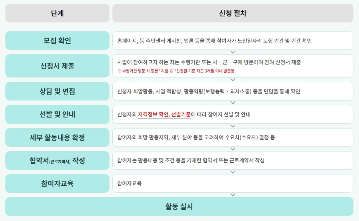 오프라인: 주민센터, 노인복지관, 시니어클럽 등 방문 신청