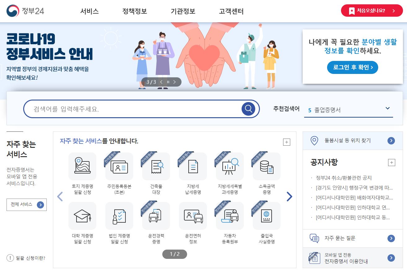 - 정부24 웹사이트 접속: www.gov.kr에 접속합니다.