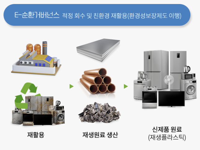 • 자원 절약: 폐가전제품에서 추출한 금속, 플라스틱 등을 재활용하여 새로운 제품 생산에 활용합니다.