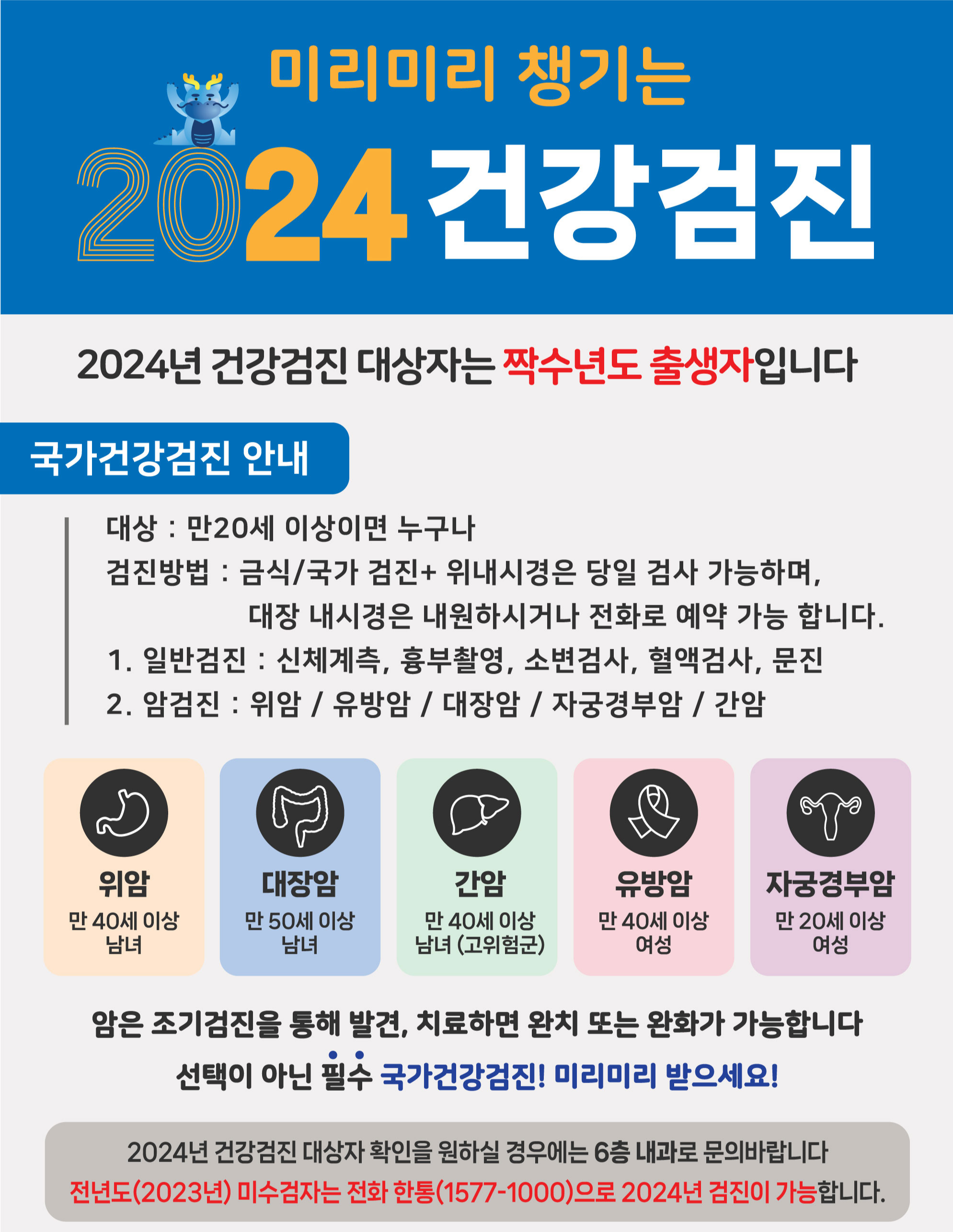 국가건강검진은 우리의 건강을 지키는 가장 기본적이고 중요한 예방 수단입니다. 특히 2024년 국가건강검진은 더욱 체계적으로 진행되어, 다양한 질병을 조기에 발견하고 예방할 수 있습니다.