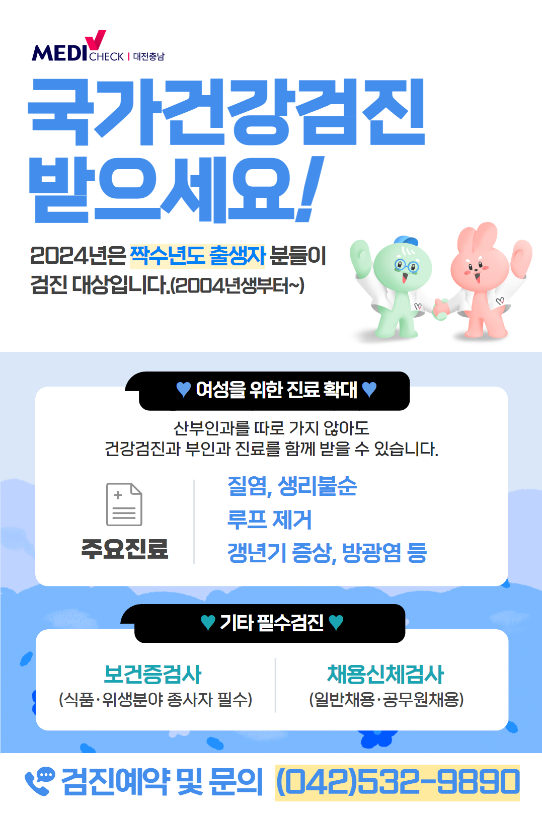 - 의료급여수급권자는 만 20세~64세까지 일반검진, 66세 이상은 생애전환기 검진 대상
