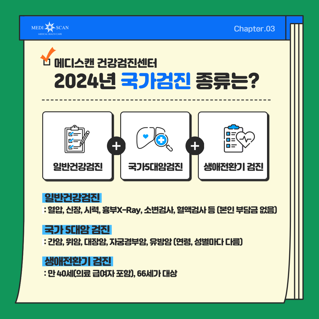 2024년 국가건강검진은 더욱 향상된 서비스를 제공합니다. 특히 디지털 기반의 검진결과 확인 시스템과 맞춤형 건강관리 서비스가 강화되었습니다.