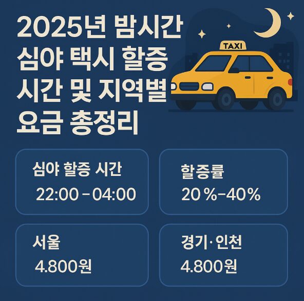 주의사항: 본 정보는 2025년 7월 기준으로 작성되었으며, 실제 택시 요금은 지역 조례, 교통 상황, 앱 할증 정책 등에 따라 달라질 수 있습니다. 특히 호출 앱 이용 시 예상 요금과 실제 요금 간 차이가 발생할 수 있으니 참고하세요.